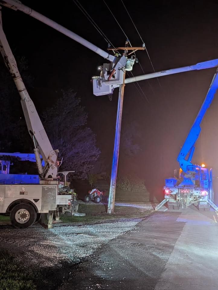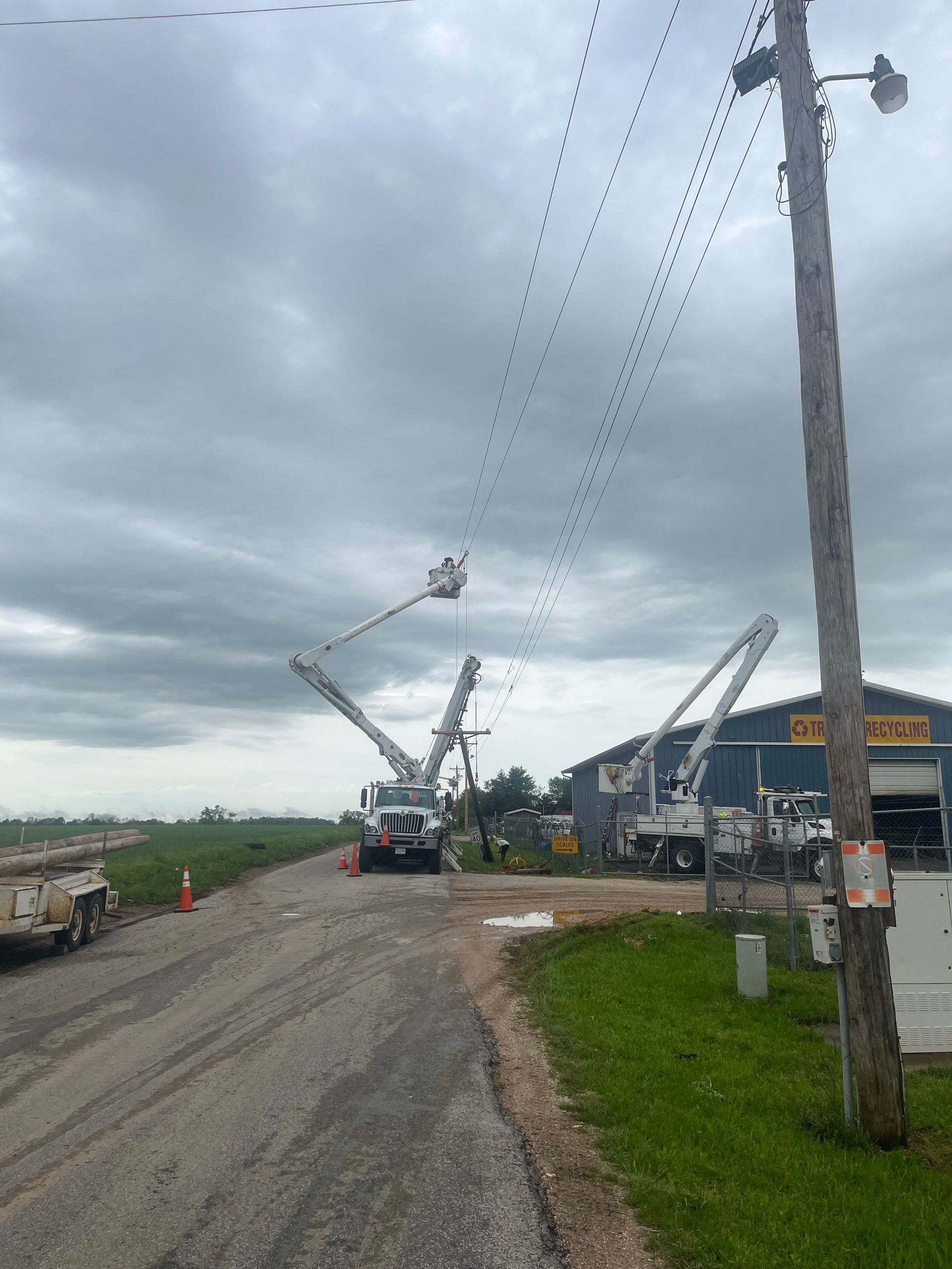 This storm was unique. In the aftermath of most storms, damage is isolated to a small area, allowing OEC crews from all three offices to respond and restore power quickly. In this case, the damage was so widespread that crews were needed in multiple counties. In addition, the number of large three-phase poles that were damaged was higher than we typically see. Broken poles totaled 60+, including three-phase and single-phase. Broken poles can take 3.5 hours to replace on a good day - longer when faced with adverse weather conditions and trees/debris that must be cleared first.