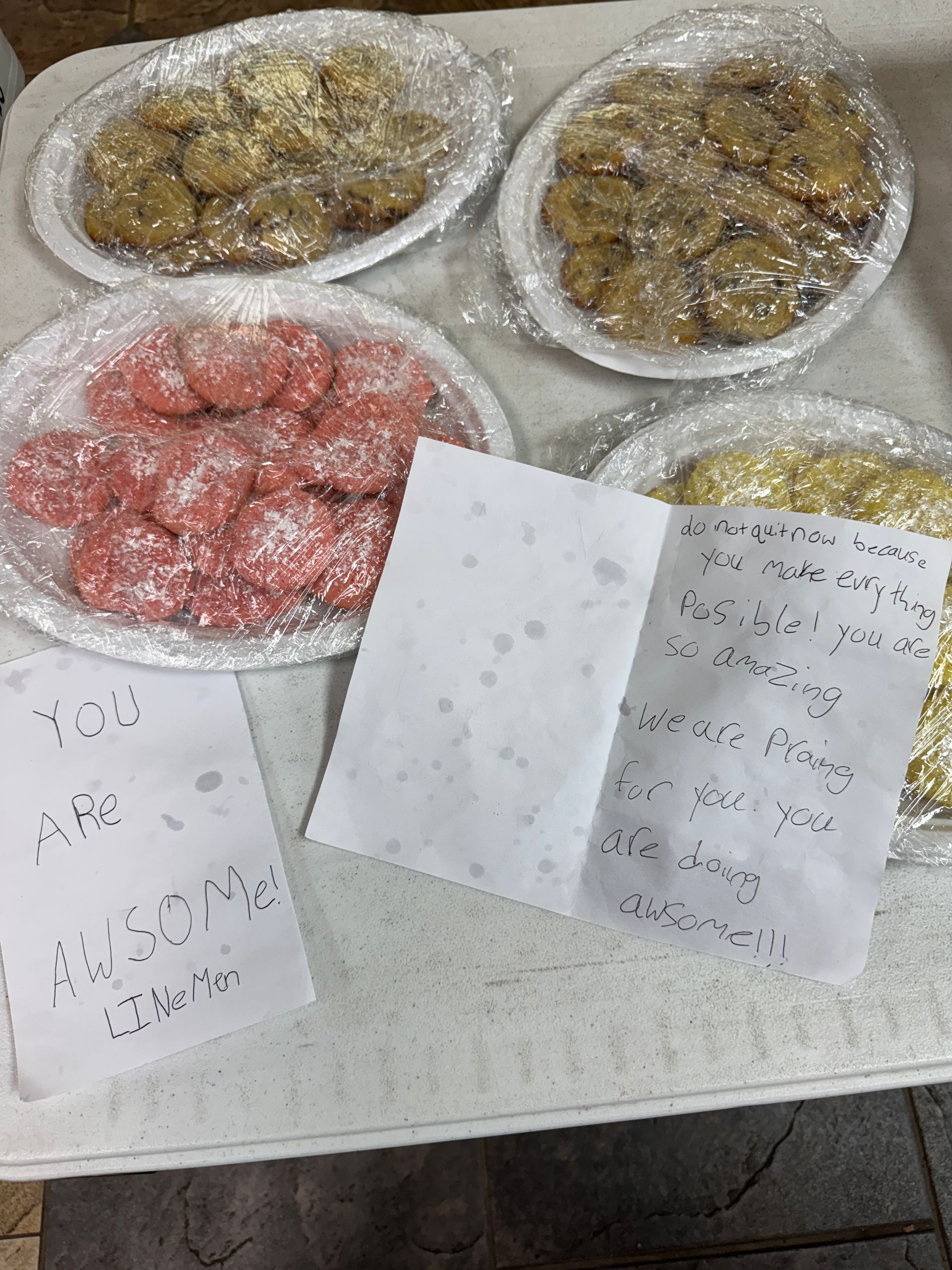 - The families of our linemen, many of whom delivered food, snacks, and drinks to crews out in the field while having damage to their own homes, outbuildings, and businesses.