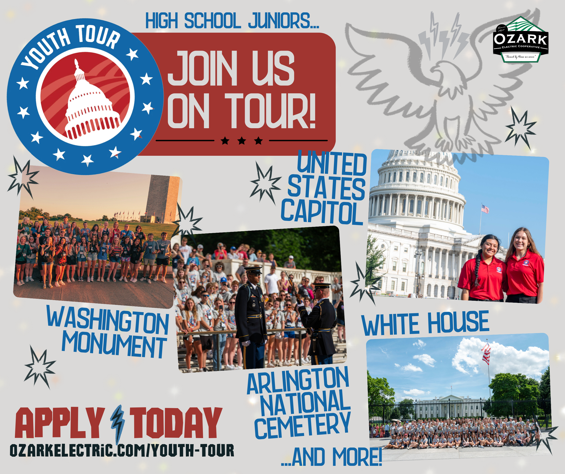 Questions? Contact Jennafer Mayfield, Youth Tour Coordinator, at jmayfield@ozarkelectric.com or (417) 724-5504.